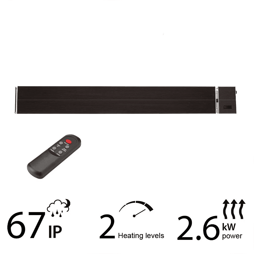 This infrared heating device has an IP67 moisture resistance rating, meaning you can confidently use it outdoors. It’s ideal for heating terraces and other outdoor spaces.