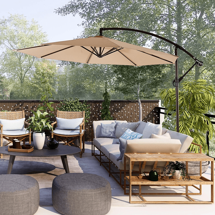 Положение больших зонтов этой модели регулируется: вы можете регулировать положение зонта по вертикальной оси, что позволяет создать больше или меньше тени и защитить от дождя. Это большое преимущество перед обычными нерегулируемыми солнцезащитными зонтами. Качественные механизмы открывания позволяют быстро и легко собирать и разбирать зонт, а также менять его вертикальное положение.